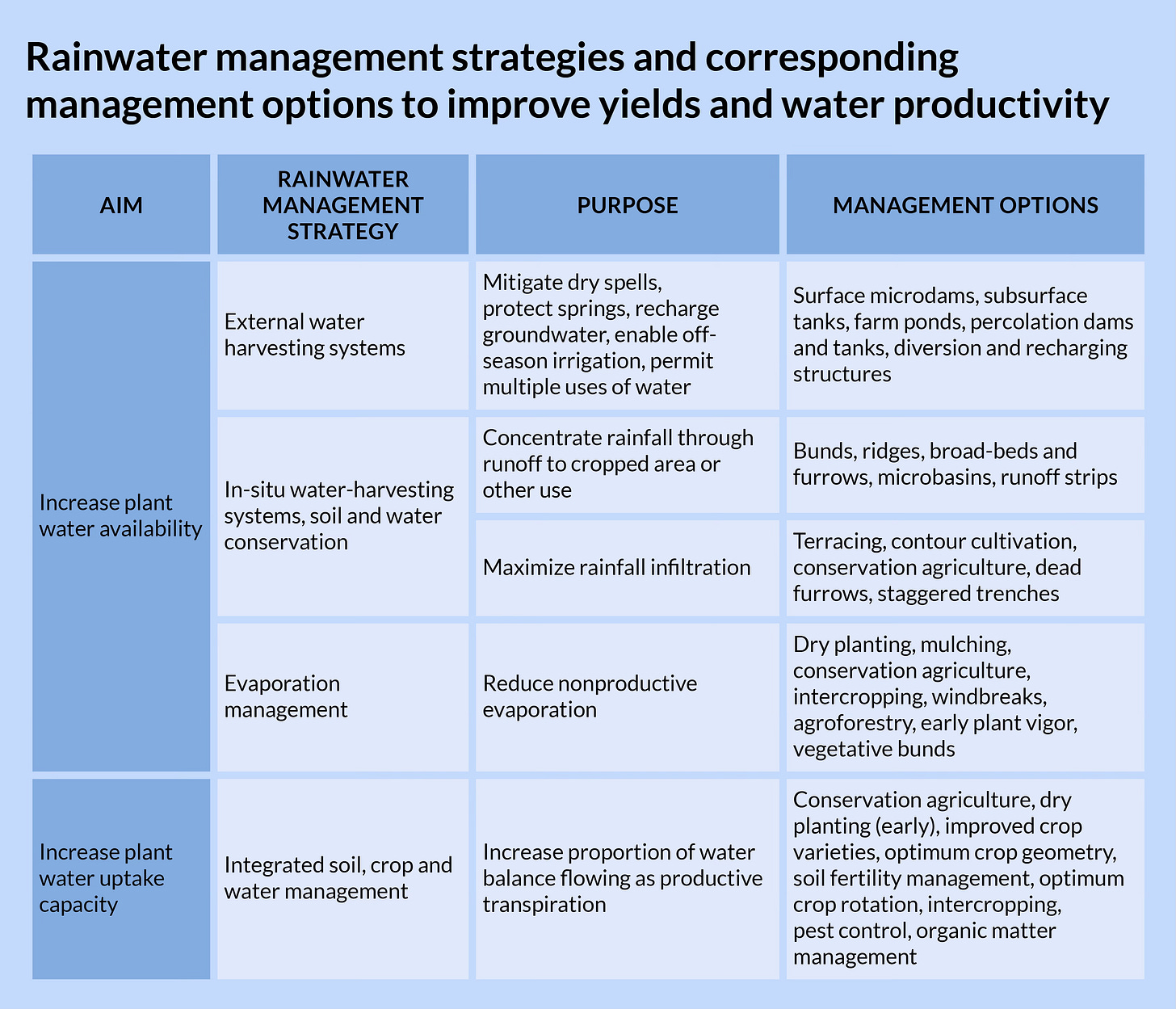 Trees are also great water retainers. Their roots can help retain more water and moisture in soil, and their shade reduces evaporation, including from ponds under trees.